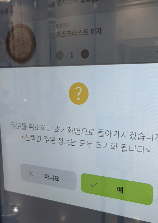 결제까지 끝나셨다면, 주문번호가 나옵니다. 주문번호가 전광판(사진의 화살표)에 표시되면 피자를 받아옵니다.