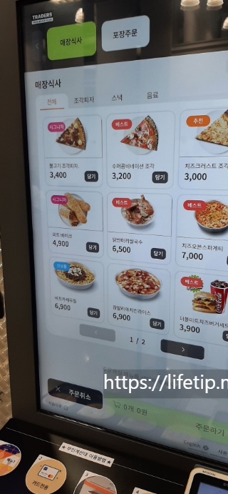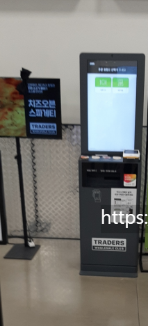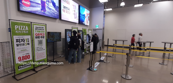 푸트 코트에 가면 아래와 같은 키오스크(무인계산대)가 있습니다. 줄을 서서 그 앞에 섭니다.