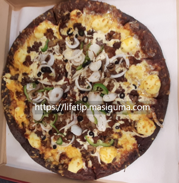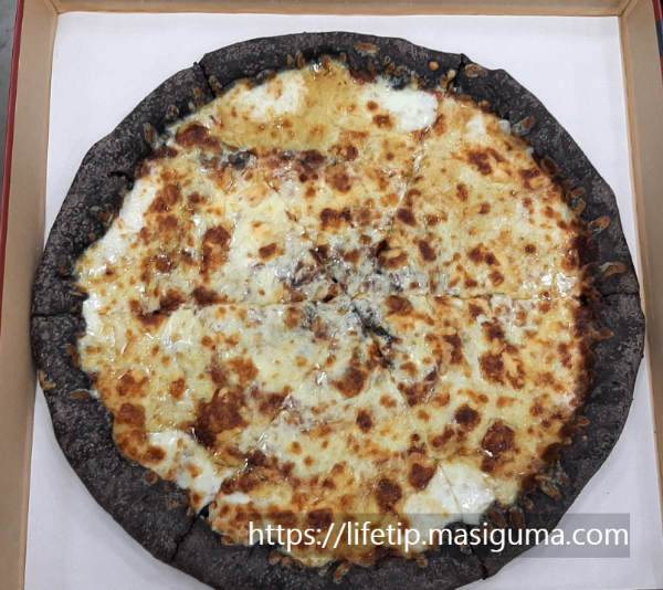 트레이더스의 피자 크기는 매우 큽니다. 크다. 그리고 다른 피자와는 다르게 피자 도우가 검습니다. 천 원짜리 지폐와 비교해 보았습니다.