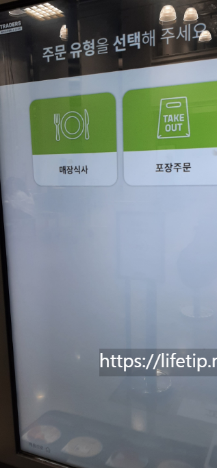푸트 코트에 가면 아래와 같은 키오스크(무인계산대)가 있습니다. 줄을 서서 그 앞에 섭니다.
