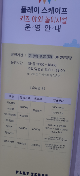 3. 플레이 스케이프 야외 놀이시설 탑승 요건 및 가격