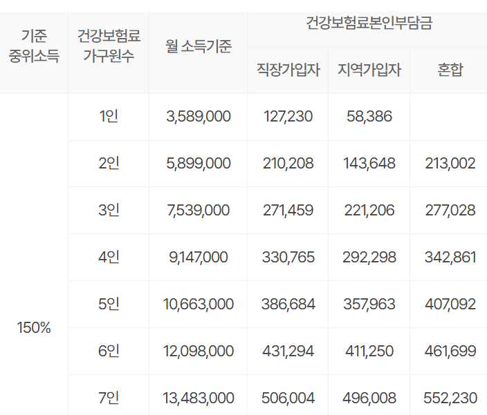 2025년 1월 건강보험료를 기준으로 판단합니다. 이번이 처음 신청하시는 것이라면 중위소득 150% 이하여야 되고, 기존에 선정된 적이 있으시다면 중위소득 120% 이하여야 합니다.