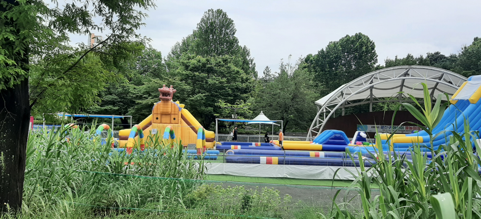 물놀이 시설로는 대형슬라이드, 에어바운스 풀장, 에어바운스 슬라이드 등이 있습니다.
