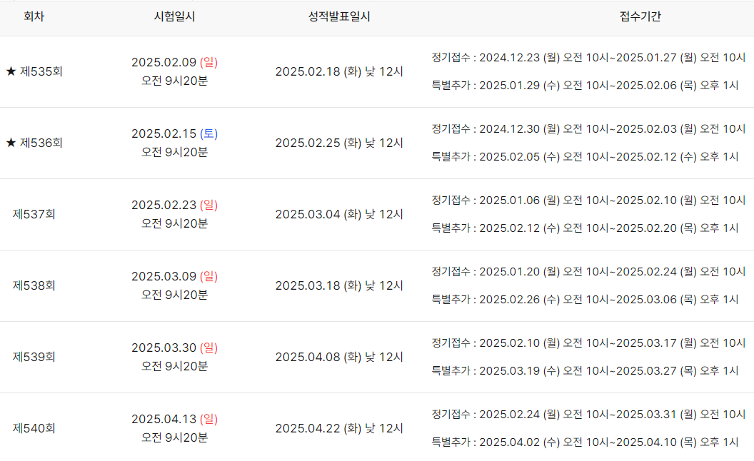 그리고 마지막 시험은 2025년 4월 25일까지 응시할 수 있는 시험이 아니라 4월 25일까지 결과가 발표된 시험입니다. 시험 응시일이 아닌 1차 시험일 기준이므로 참고하시기 바랍니다.