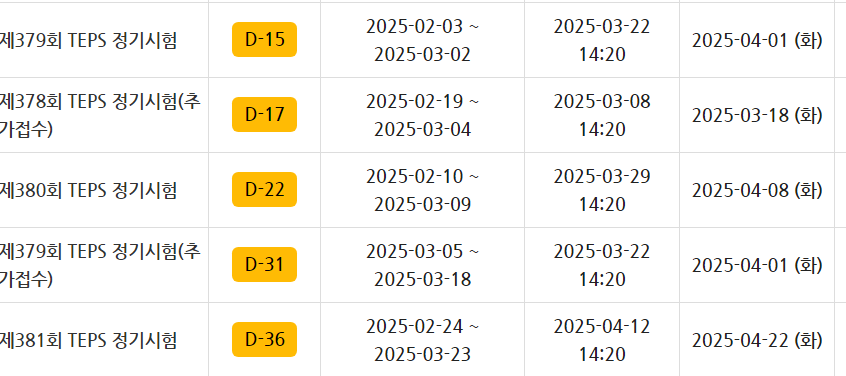 텝스는 4월 12일 시험까지 유효합니다. 역시 4월 22일 발표이므로 조건을 충족합니다.