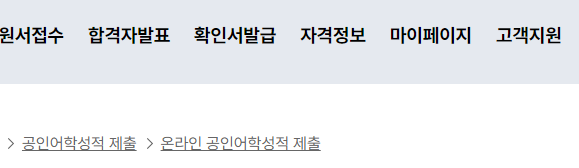 a. 큐넷 세무사 홈페이지로 이동합니다. 상단의 마이페이지에서 [공인어학성적 제출]을 선택합니다.