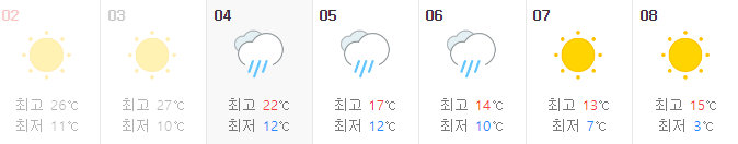 매우 안타까운 소식이죠. 행사 둘째 날인 4월 5일 수요일에 비가 온다고 하네요.