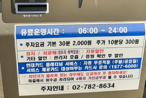 운영시간은 새벽 6시부터 자정까지이고요. 경차나 저공해차는 할인이 됩니다.