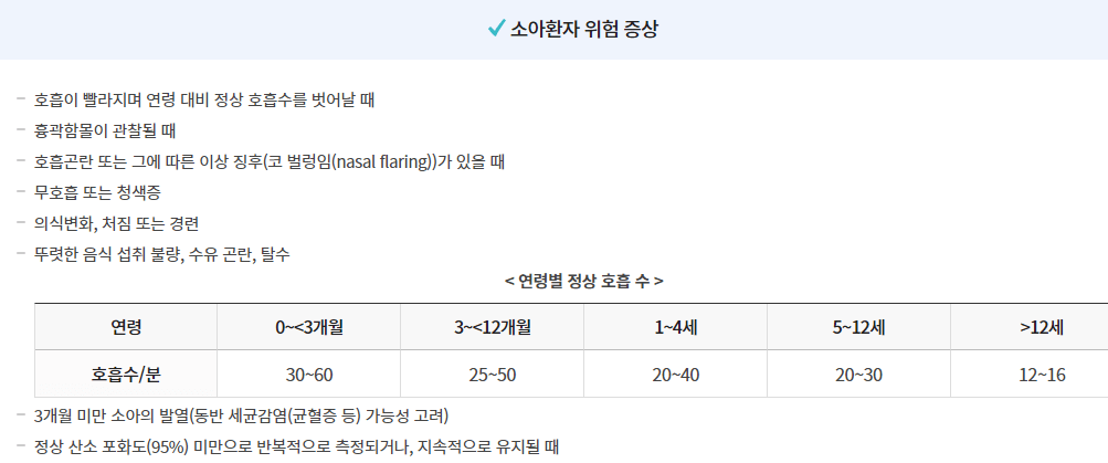 - 호흡이 불편해 보이는 경우(인후통으로 호흡이 곤란해질 수 있다)