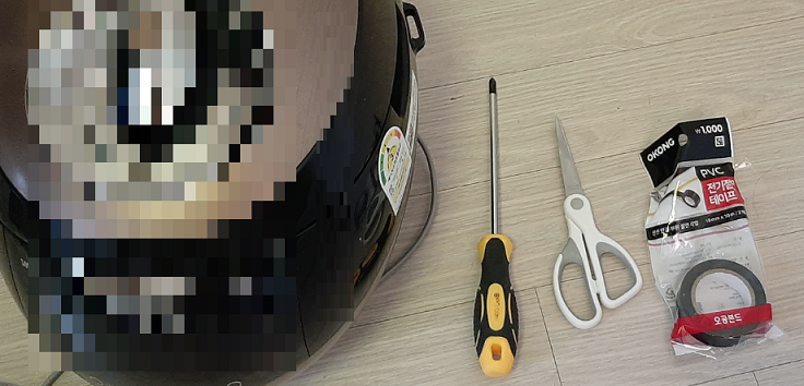 - 가위 : 전선의 피복을 제거할 때, 배출구 아래의 핀(?)을 제거할 때 사용합니다. (일자 드라이버로도 가능합니다.)