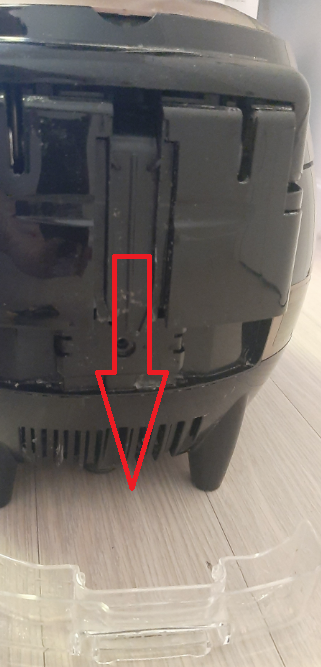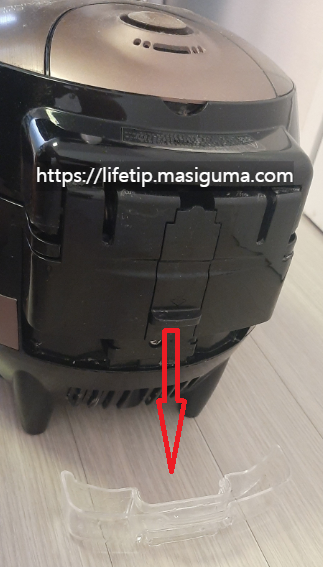일단 밥솥 뒷부분의 물받이를 화살표 방향으로 당겨서 빼냅니다.