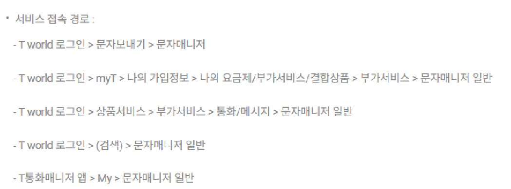티월드 홈페이지에서 문자매니저를 이용할 수 있는 방법이 아래처럼 안내되고 있습니다.
