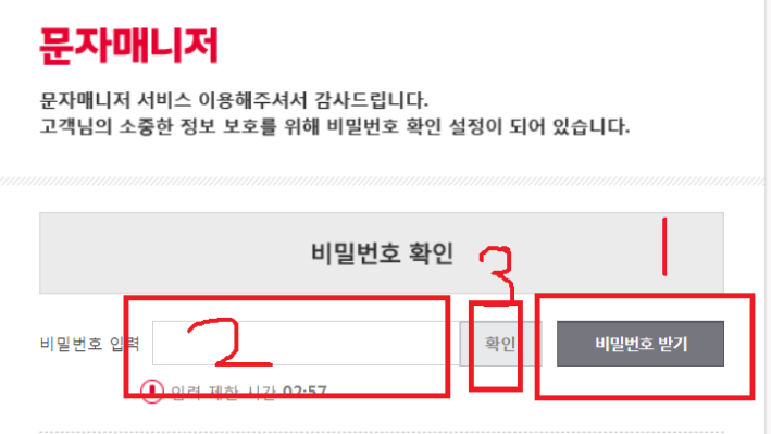 비밀번호 받기를 누르면 핸드폰으로 비밀번호가 옵니다.