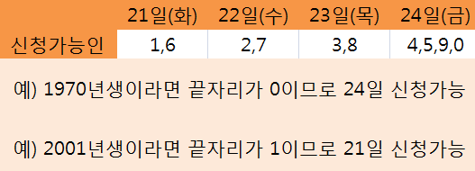 요일별 4부제가 이해되지 않으시다면 1월 31일(금) 이후에 신청하시면 됩니다.