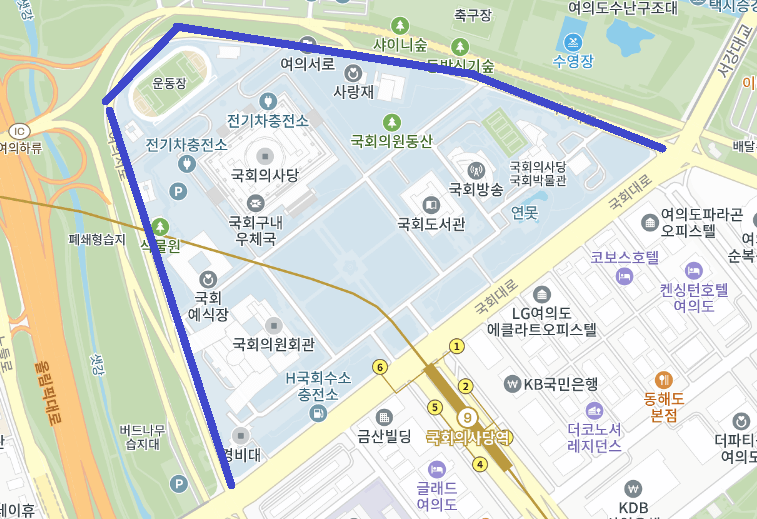 위의 지도에서 파란색 선이 행사 장소입니다. 여의도 국회를 돌면서 축제가 펼쳐집니다.