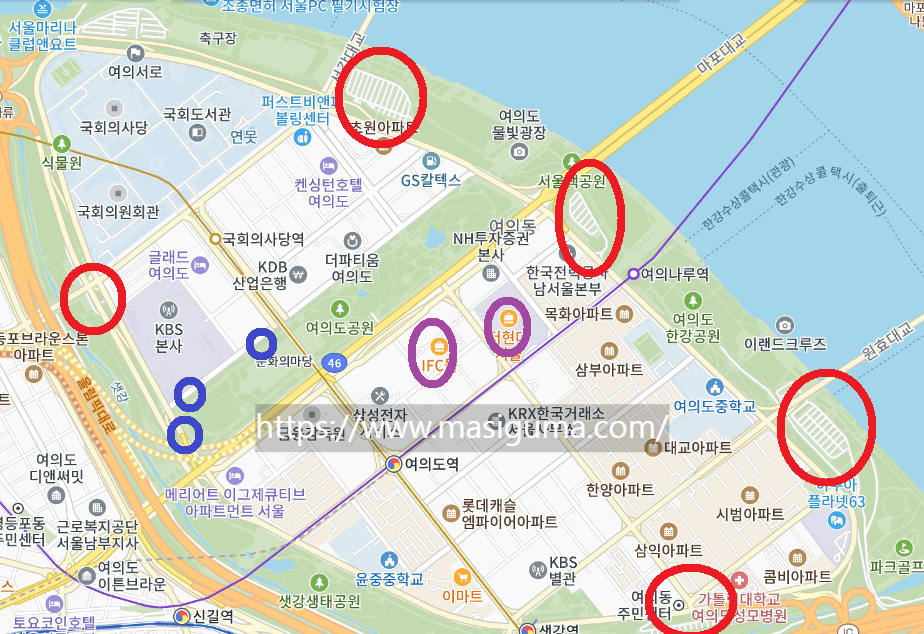 위의 지도에서 파란색 선이 행사 장소입니다. 여의도 국회를 돌면서 축제가 펼쳐집니다.