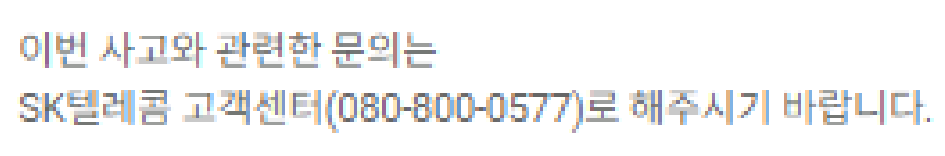 이번 사건 이후 SK텔레콤에서는 자사 홈페이지에 아래와 같은 안내문을 띄운 상태입니다.